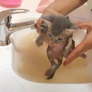 汚れた子猫を『はじめてのお風呂』に入れたら…まさかの光景が微笑ましすぎると138万再生「綺麗になったね」「かわいすぎるw」の声