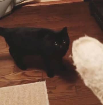 投げたオモチャ目がけて猛ダッシュ! 「犬の遊びなんだよなぁ」とツッコミたくなる猫の一連の反応にクスッ