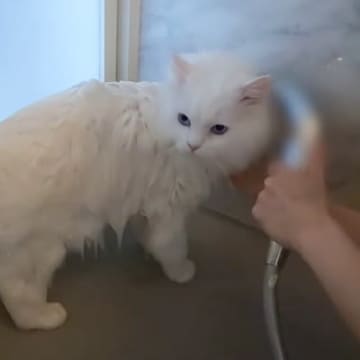 YouTubeチャンネル「あつまれちいかまの森」に、白猫のシロちゃんが一年ぶりにお風呂に入った際の、...