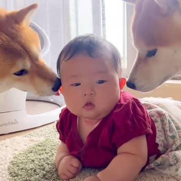 犬たちが『生後3ヵ月の赤ちゃん』と一緒に暮らした結果…心温まる対応が『本当のお姉ちゃん』のようだと47万再生「キュン」「愛に溢れてる」
