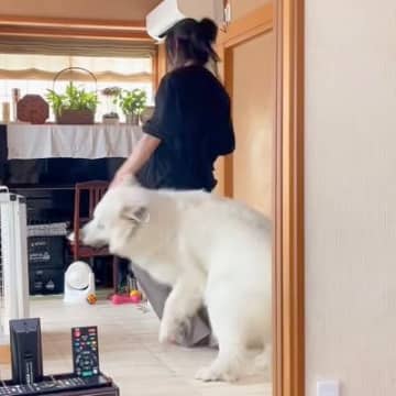 Instagramに投稿された超大型犬と飼い主さんのやりとりが話題です。超大型犬のじゃれつきを回避し...