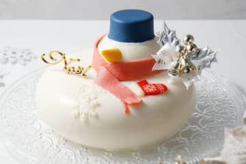 セバスチャン・ブイエ24年クリスマスケーキ、"雪だるま”白いコーヒームース&ピスタチオのツリーケーキ