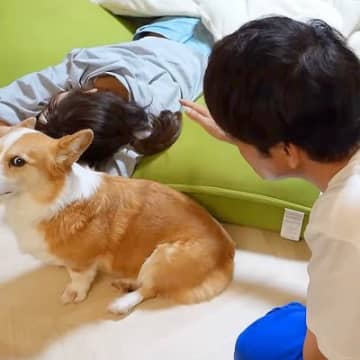 YouTubeチャンネル「コギチューブ【犬と猫のゆるい生活】」に投稿されたのは、パパがママに触ろうと...