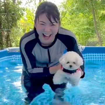 犬がプールに入るのを見ていた大人たちが…可愛すぎて『IQが異常に低くなる光景』に共感と爆笑の声「脳が溶けそう」「語彙力w」と206万再生