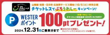 JR西日本は、「チケットレスでぶちうれしーキャンペーン!」を9月19日から12月31日まで開催してい...