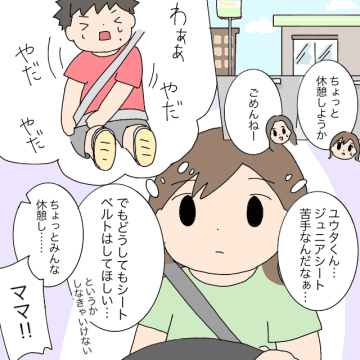 他人の車中で「シートベルトやだ!」「ママの隣!」泣き叫ぶ男の子。ママ友付き合いやめました[2-1]|ママ広場マンガ