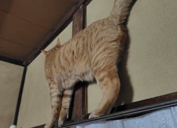 カーテンレールの上に薄っぺらい猫を発見!「何が起きた?」「半端ない!」と話題に