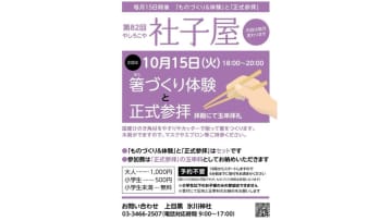 10月の内容は?毎月15日に行われる上目黒氷川神社の社小屋。 今月のイベント内容は箸づくり体験と正式...