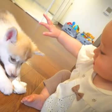 1歳の赤ちゃんが『子犬のお世話をどうしてもしたかった』結果…平和すぎる『尊い光景』が6万再生「かわいいが大渋滞」「幸せな気持ちになる」