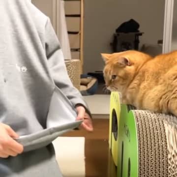 猫に『カンガルー親子になれる服』を試した結果…可愛すぎる光景に悶絶する人続出「メロメロです」「こりゃたまりません」と13万再生