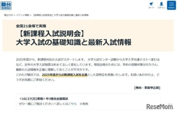 駿台予備学校は、中1~高2生の保護者を対象に「新課程入試説明会」を全国21会場で実施する。実施日程は...