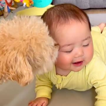 Instagramに投稿されたのは、ワンコと赤ちゃんが絆を深めていく様子です。突然妹ができても、ワン...