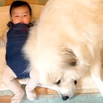 生まれて5ヶ月の赤ちゃんに、超大型犬が…まさかの『野生の本能』を見せる瞬間が75万再生「優しくて大きなお兄ちゃん」「信頼してる」と絶賛