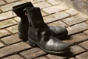 グイディのビオトープ限定バックジップブーツ、経年変化楽しむブラック&ヴィブラムソールのグリーンで
