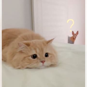 『見られてたんだ』猫が背後にいる存在に気付いた結果…可愛すぎる表情が128万再生「誰か見てるーw」「スーパー可愛い」