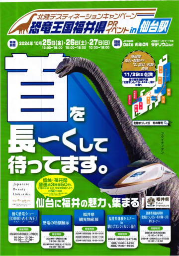 いかがお過ごしですか、nittaです。 JR仙台駅構内各所で『恐竜王国福井県フェア』を,今週末の20...
