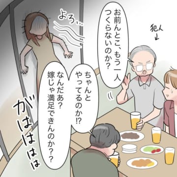 前回の話夫ミノルさんの実家に娘ユズキちゃんを連れて家族で帰省したナオミさんは、親戚が集まる宴会のお手...