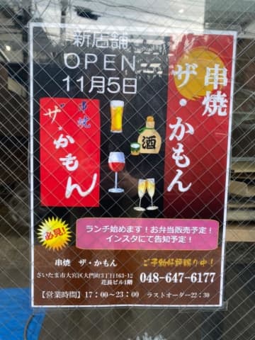 大宮東口の老舗店「串焼きザ・かもん」が徒歩30秒ほどの場所に移転オープン大宮駅東口徒歩5分ほどの場所...