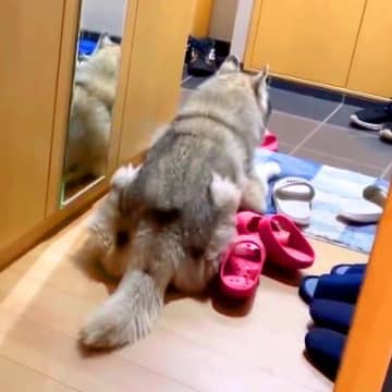 家族を待つシベリアンハスキーの姿がYouTubeチャンネル「プピプピ文太」に投稿されました。記事執筆...