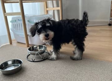 朝ごはんを食べる子犬の写真を比較 「たった2カ月半でモフッと大きくなった姿」に成長を実感!