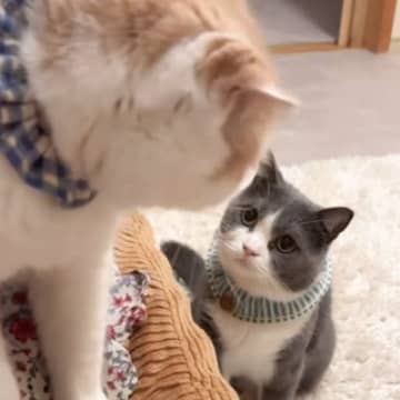 猫のバトルが始まった結果…まさかの『奥にいた猫の表情』が59万7000再生「シュールすぎるww」「自分にやられたくらいの顔w」