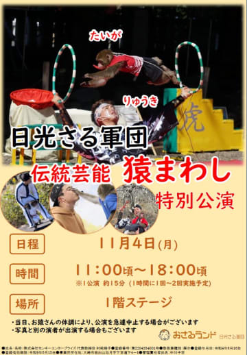 【宮城野区】三井アウトレットパーク仙台港で日光さる軍団『猿まわし』を11月4日に開催するみたい!