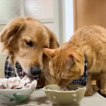 猫と犬が『しゃぶしゃぶパーティー』に参加した結果…まさかすぎる結末に「肉より魚かも…」「めっちゃ笑った」と7万1000再生の反響
