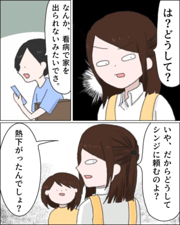 前回の話娘ユリちゃんの保育園へお迎えに行った夫シンジさんは、お友達ムギちゃんが発熱し困っていたムギち...