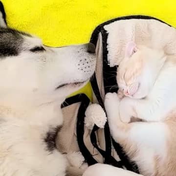 シベリアンハスキーがいる家に『子猫がきた』結果…想像以上な『3年後の姿』が尊すぎると70万再生「甘え方の癖がw」「本当の家族」と絶賛