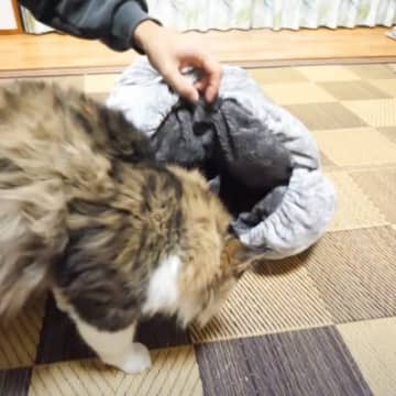 元ボス猫に『ロールクッション』をプレゼントした結果…まさかの『可愛すぎる姿』が37万3000再生「ニヤニヤした」「外の動きでww」