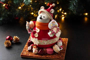 軽井沢プリンスホテル24年クリスマス、“くまのサンタ”型立体ケーキ&ハンドバッグ風ミルフィーユ