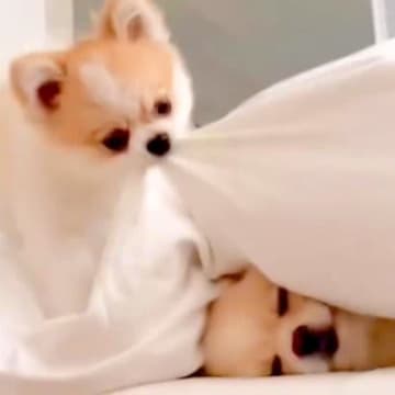 Instagramに投稿されたのは、眠りたい兄犬VS遊びたい弟犬の微笑ましい攻防戦です。弟犬は必死に...
