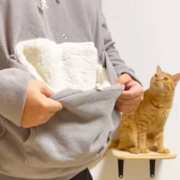 パーカーのポケットに『猫を入れてみた』結果…まさかの『可愛すぎる光景』が144万再生を突破「流れるようにw」「覚えてろよみたいな顔w」