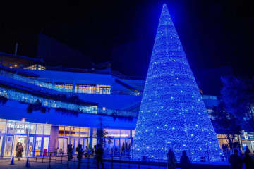 テラスモール湘南の24年冬イルミネーション - “海や空”の青い光の空間、シンボルツリーも