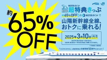 JR西日本は、「WESTERポイント超特典きっぷ」をポイント交換商品として、11月1日から2025年...