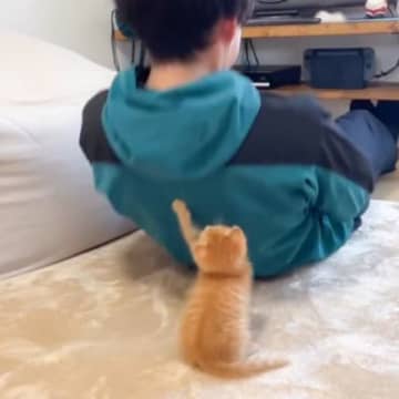 腹筋をしていたら、子猫が……まさかの可愛すぎる『トレーナー姿』に悶絶する人続出「毎日通っちゃうかも」「タイミング最高」の声