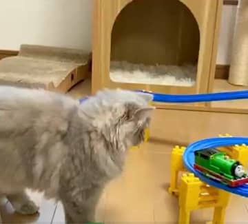 「なにもの?」と驚いたのに攻撃をしかける変化がたくましい 初めて“動くおもちゃ”を見る猫の心理
