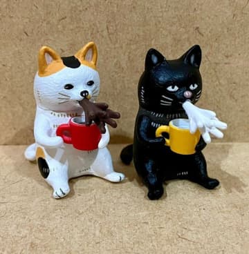 口から盛大に飲み物を吹き出しちゃう! 「ネコ舌」な猫のフィギュアがシュールで可愛い