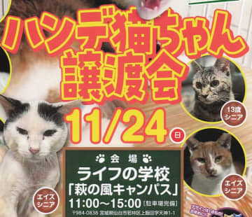 【若林区】『ハンデ猫ちゃん譲渡会』を11月24日に開催するみたい!