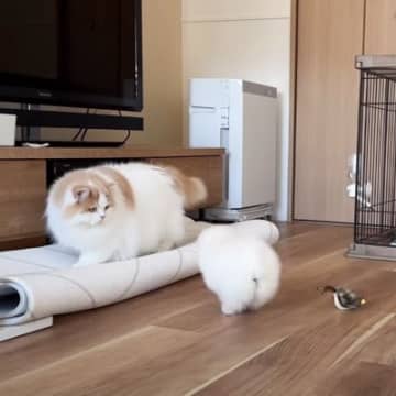コケてしまった子犬に先輩猫が見せた反応…『感動の光景』が70万再生の大反響「平和な世界に癒やされた」「もはや母さん」の声