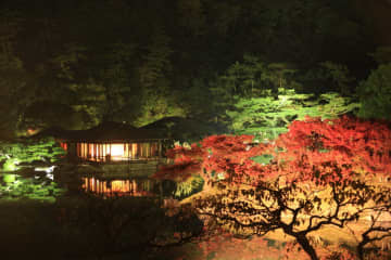 香川県の特別名勝「栗山公園」紅葉ライトアップ、幻想的な湖の水面&夜間限定の周遊和船も