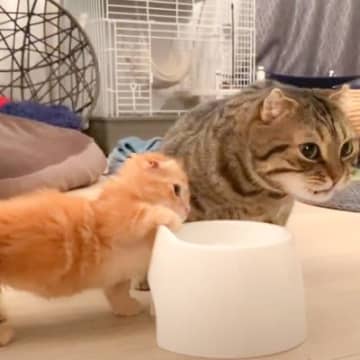 お兄ちゃんにちょっかいをかけた子猫→叱られた結果…まさかの『死んだふり』に悶絶する人続出「やばい可愛すぎる」「降参って感じがかわいい」