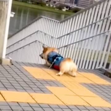 不仲なワンコとパパさんがお散歩から帰ってこないと思ったら、もっとお散歩したいワンコVS帰りたいパパさ...