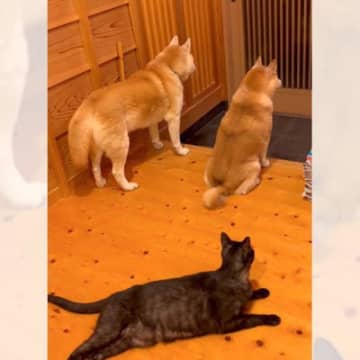 パパが帰宅する時間になったら、猫と柴犬が……尊すぎる『お出迎えの様子』が53万再生を突破「早く帰宅したくなるね」「マイペースw」