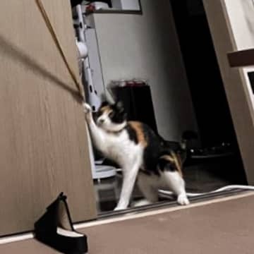 猫の爪に洗濯物が引っかかっていると思ったら…『衝撃的すぎる光景』に爆笑の声続出!「猫ビーム」「電車の中で見たらいかんw」と951万表示
