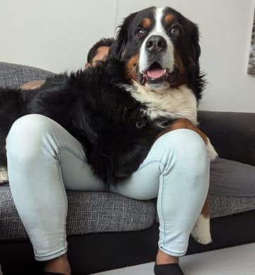 30時間ぶりに大好きなパパが帰宅!→膝の上に乗って「ニヤニヤ」が止まらない大型犬にほっこり!