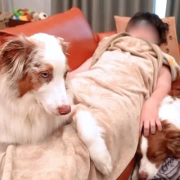 息子が熱を出して学校をお休みしたら、犬たちが…思った以上に『心配する光景』が泣けると21万再生「尊い…」「犬って本当に愛が詰まってる」