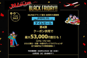 ジャルパックは、「60周年大感謝祭タイムセール 第5弾」を11月22日午前10時から12月3日まで実...
