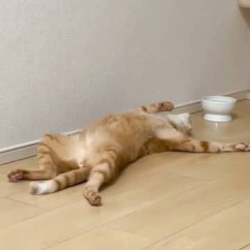 だらけまくっている猫を発見→呼んでみた結果…まさかすぎる『返事の仕方』が362万再生「飲み会後のサラリーマンw」「出来上がってるw」