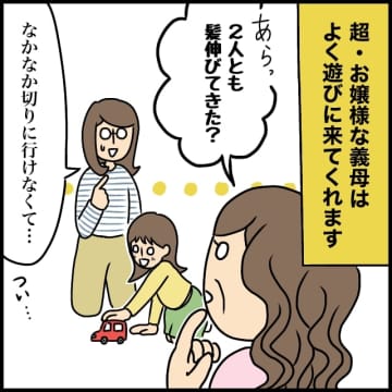 伸びきった髪の嫁と孫を見て企画を思いついた様子の義母に一抹の不安を感じる。義母はやっぱりお嬢様[5-1]|ママ広場マンガ